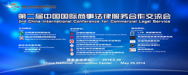 2014年5月29日,2014"京交会"中国国际商事法律服务合作交流会在国家会议中心隆重开幕。中国服务贸易协会副秘书长顾文忠代表组委会向来自国内外代表致欢迎词,香港律师会会长林新强、Lakshmikumsran&Sridharan CEO S.Seetharaman、美国凯威莱德律师事务所合伙人朱文红、澳大利亚铭德律师事务所合伙人李占柱、香港的近律师行合伙人司徒英健、L.Papaphilippou律师事务所中国部负责人Elena Christodoulou、新加坡瑞德律师事务所国际涉华仲裁总监葛黄斌等国际知名法律服务机构领导,还有国防科工局、中国人民大学民商事法律科学研究中心、北京市律师协会、河北省商务厅、中国高科集团、中国对外文化集团、中国电信集团、妮维雅、中国欧盟商会、深圳市律师协会、山东康桥律师事务所、上海必智科技有限公司等来自全国各地的企事业单位及法律服务机构相关负责人约200多人出席。